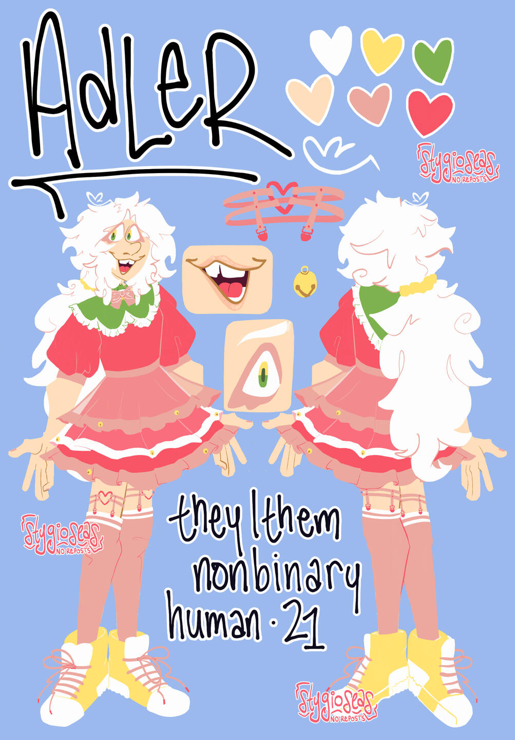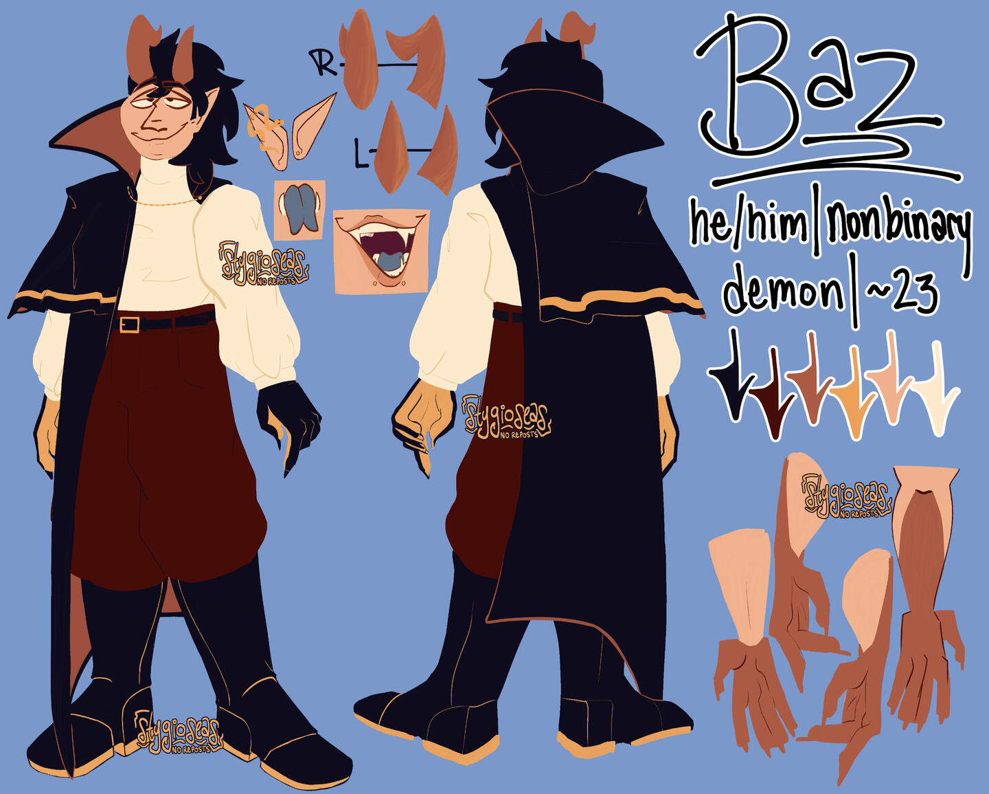 references of my original characters, in various states of completion.